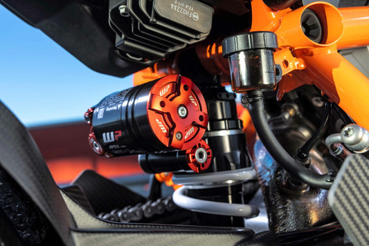 Focus on first corner, continuous pressure on the throttle, the rubber finds its grip crunshing on the asphalt. Every bumb swallowed by 100% motosport technology. Every wrinkle of the road transferred to the rider in form of the most direct feedback in the game. WP APEX PRO COMPONENTS were molded by the influence and experience of first class MotoGP riders and their teams and celebrated for their superiority in every class. Developed and handcraftet in Austria with the highest care and precision, APEX PRO was designed to help each ambitious rider to reach their personal peak performance on the racetrack and on the road.